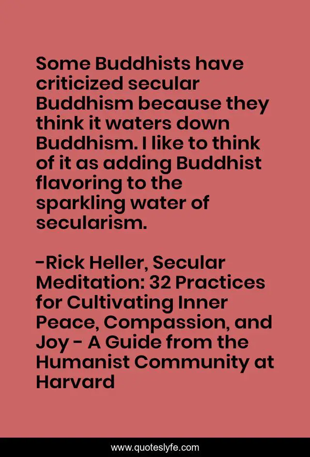 "Rick Heller, Secular Meditation: 32 Practices for Cultivating Inner Peace, Compassion, and Joy - A Guide from the Humanist Community at Harvard Quotes." Quoteslyfe.com, 2025. Sun. 07 Dec. 2025. <https://www.quoteslyfe.com/quote/Some-Buddhists-have-criticized-secular-Buddhism-because-195128>.