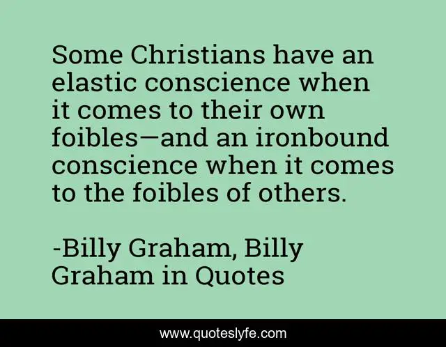This page presents the quote "Some Christians have an elastic conscience when it comes to their own foibles—and an ironbound conscience when it comes to the foibles of others.". Author of this quote is Billy Graham, Billy Graham in Quotes. This quote is about conscience, billy-graham,.