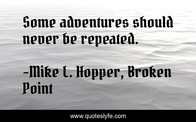 "Mike L. Hopper, Broken Point Quotes." Quoteslyfe.com, 2025. Fri. 05 Dec. 2025. <https://www.quoteslyfe.com/quote/Some-adventures-should-never-be-repeated-151920>.
