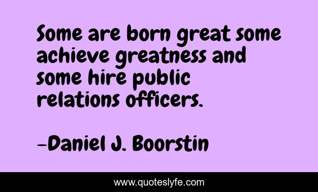 This page presents the quote "Some are born great some achieve greatness and some hire public relations officers.". Author of this quote is Daniel J. Boorstin. .