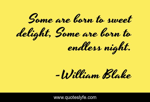 This page presents the quote "Some are born to sweet delight, Some are born to endless night.". Author of this quote is William Blake. .