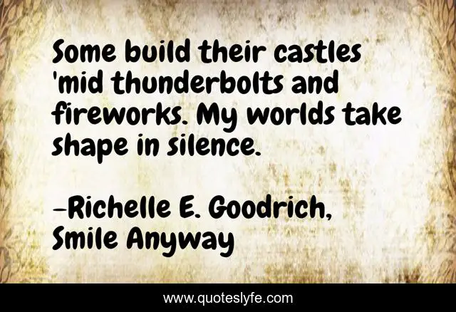 "Richelle E. Goodrich, Smile Anyway Quotes." Quoteslyfe.com, 2025. Sun. 07 Dec. 2025. <https://www.quoteslyfe.com/quote/Some-build-their-castles-mid-thunderbolts-and-108799>.