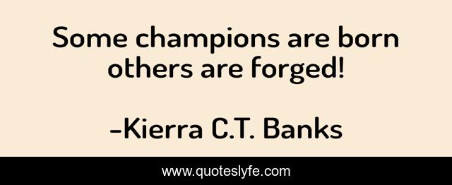 This page presents the quote "Some champions are born others are forged!". Author of this quote is Kierra C.T. Banks. This quote is about provocative, mantra, meditation, resilience, strength, wealth, character, health, passion,.