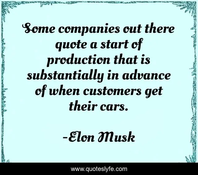 This page presents the quote "Some companies out there quote a start of production that is substantially in advance of when customers get their cars.". Author of this quote is Elon Musk. This quote is about start, customers, production,.