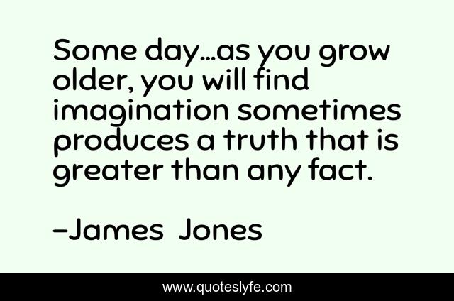 This page presents the quote "Some day...as you grow older, you will find imagination sometimes produces a truth that is greater than any fact.". Author of this quote is James Jones. .