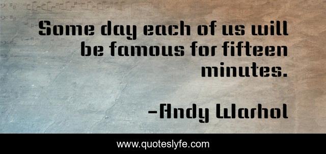 This page presents the quote "Some day each of us will be famous for fifteen minutes.". Author of this quote is Andy Warhol. This quote is about celebrities, fame,.