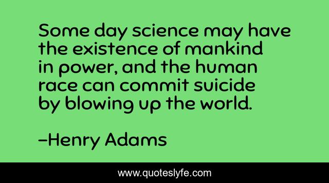 This page presents the quote "Some day science may have the existence of mankind in power, and the human race can commit suicide by blowing up the world.". Author of this quote is Henry Adams. This quote is about world, day, power,.