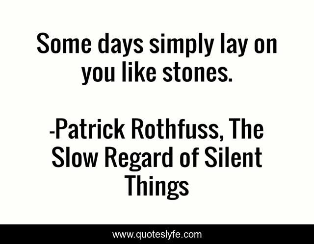 "Patrick Rothfuss, The Slow Regard of Silent Things Quotes." Quoteslyfe.com, 2025. Fri. 05 Dec. 2025. <https://www.quoteslyfe.com/quote/Some-days-simply-lay-on-you-like-161299>.