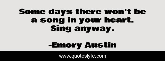 This page presents the quote "Some days there won't be a song in your heart. Sing anyway.". Author of this quote is Emory Austin. This quote is about enthusiasm, endurance, music, inspirational,.
