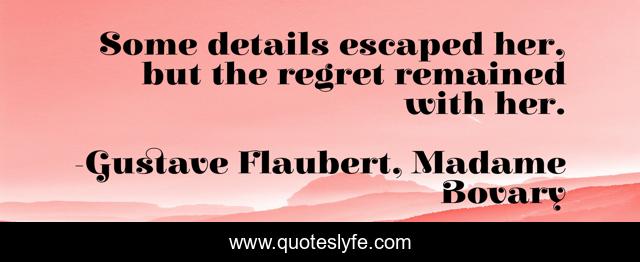 This page presents the quote "Some details escaped her, but the regret remained with her.". Author of this quote is Gustave Flaubert, Madame Bovary. .