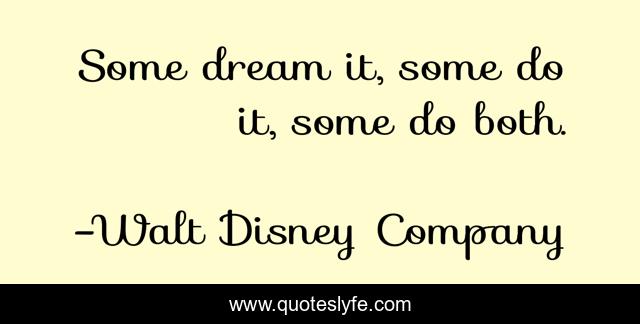 This page presents the quote "Some dream it, some do it, some do both.". Author of this quote is Walt Disney Company. This quote is about quote, dream, walt-disney,.