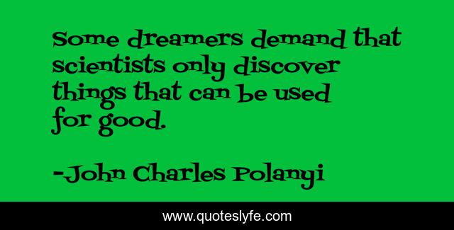 This page presents the quote "Some dreamers demand that scientists only discover things that can be used for good.". Author of this quote is John Charles Polanyi. This quote is about good, dreamers, discover,.