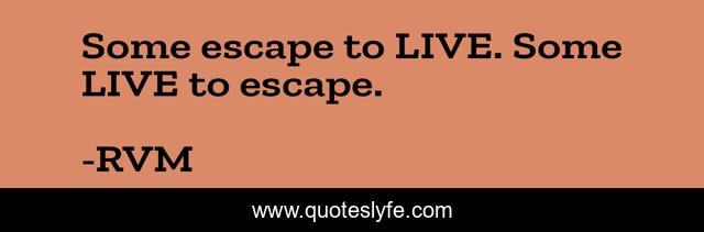This page presents the quote "Some escape to LIVE. Some LIVE to escape.". Author of this quote is RVM. This quote is about confidence, positive, motivational, optimistic, inspirational, enthusiasm,.