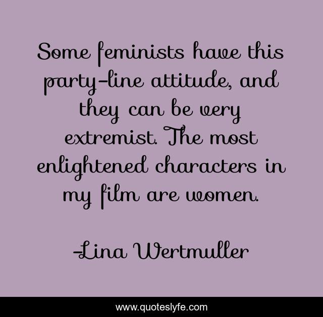 This page presents the quote "Some feminists have this party-line attitude, and they can be very extremist. The most enlightened characters in my film are women.". Author of this quote is Lina Wertmuller. This quote is about film, women,.
