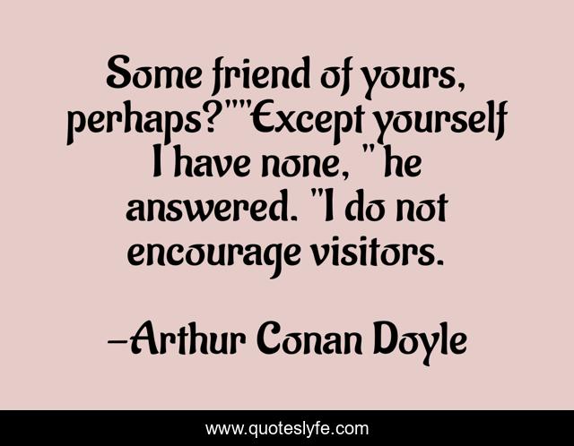 This page presents the quote "Some friend of yours, perhaps?""Except yourself I have none, " he answered. "I do not encourage visitors.". Author of this quote is Arthur Conan Doyle. .