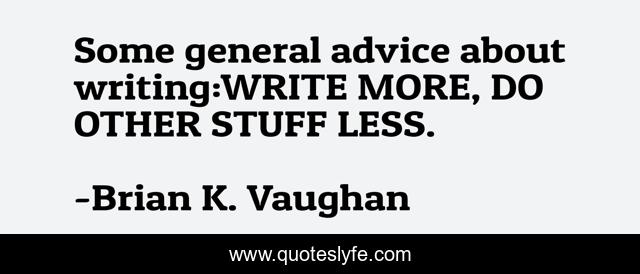 "Brian K. Vaughan Quotes." Quoteslyfe.com, 2025. Sat. 06 Dec. 2025. <https://www.quoteslyfe.com/quote/Some-general-advice-about-writing-WRITE-MORE-147115>.