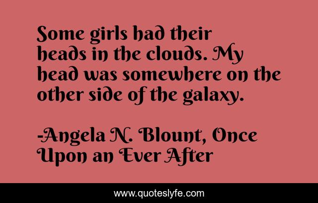 This page presents the quote "Some girls had their heads in the clouds. My head was somewhere on the other side of the galaxy.". Author of this quote is Angela N. Blount, Once Upon an Ever After. This quote is about geek, geek-girl, girls, geekery,.
