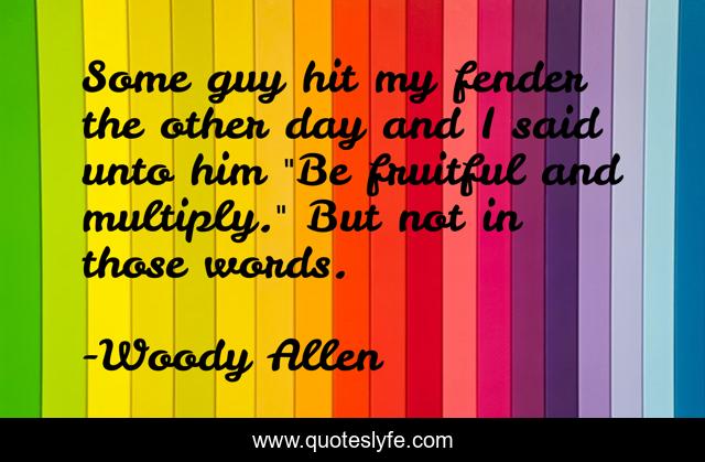 This page presents the quote "Some guy hit my fender the other day and I said unto him "Be fruitful and multiply." But not in those words.". Author of this quote is Woody Allen. This quote is about quarrels, arguments,.