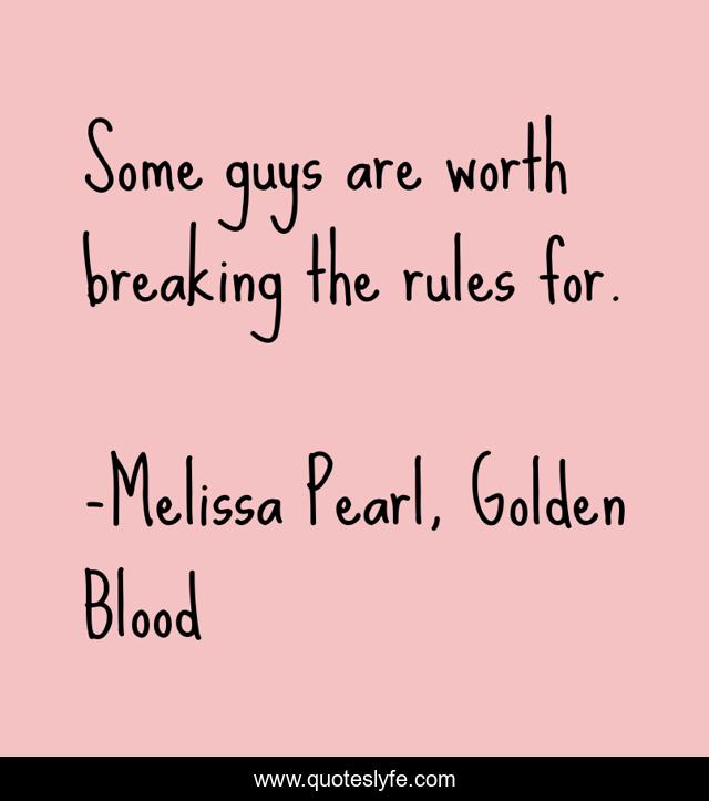 "Melissa Pearl, Golden Blood Quotes." Quoteslyfe.com, 2025. Fri. 05 Dec. 2025. <https://www.quoteslyfe.com/quote/Some-guys-are-worth-breaking-the-rules-18337>.