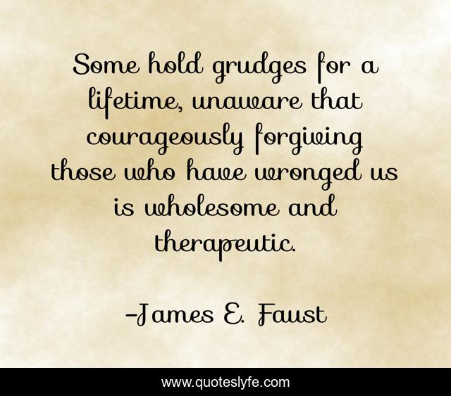 This page presents the quote "Some hold grudges for a lifetime, unaware that courageously forgiving those who have wronged us is wholesome and therapeutic.". Author of this quote is James E. Faust. .