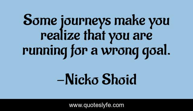 This page presents the quote "Some journeys make you realize that you are running for a wrong goal.". Author of this quote is Nicko Shoid. .