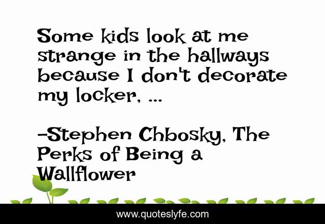 This page presents the quote "Some kids look at me strange in the hallways because I don't decorate my locker, ...". Author of this quote is Stephen Chbosky, The Perks of Being a Wallflower. .
