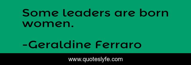 This page presents the quote "Some leaders are born women.". Author of this quote is Geraldine Ferraro. This quote is about politics, leadership, leaders, feminism, women,.