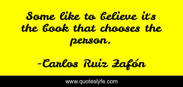 This page presents the quote "Some like to believe it's the book that chooses the person.". Author of this quote is Carlos Ruiz Zafón. This quote is about books, choose, book-lovers, people,.