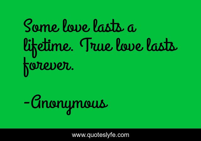 This page presents the quote "Some love lasts a lifetime. True love lasts forever.". Author of this quote is Anonymous. This quote is about true, love, affection,.