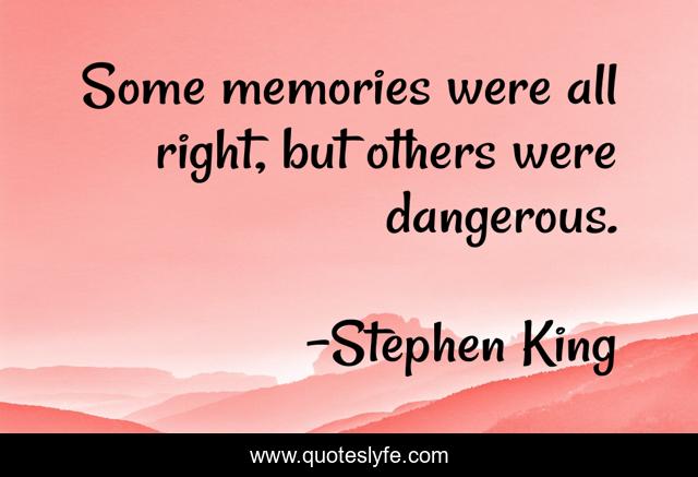 This page presents the quote "Some memories were all right, but others were dangerous.". Author of this quote is Stephen King. This quote is about memories, looking-back, lisey-s-story, safety, dangerous, stephen-king,.