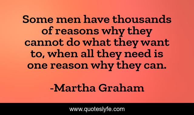 "Martha Graham Quotes." Quoteslyfe.com, 2025. Mon. 08 Dec. 2025. <https://www.quoteslyfe.com/quote/Some-men-have-thousands-of-reasons-why-326668>.