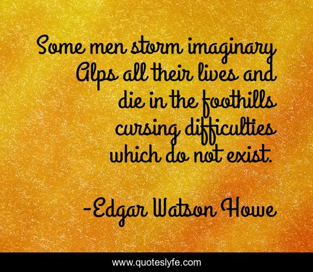 This page presents the quote "Some men storm imaginary Alps all their lives and die in the foothills cursing difficulties which do not exist.". Author of this quote is Edgar Watson Howe. .