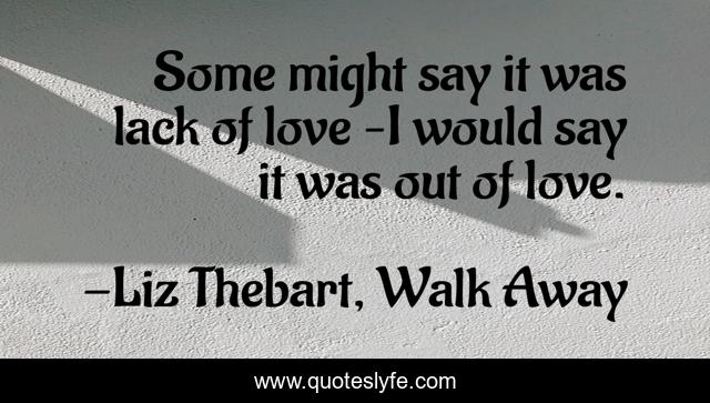 This page presents the quote "Some might say it was lack of love –I would say it was out of love.". Author of this quote is Liz Thebart, Walk Away. This quote is about self-love, love, growth, self-improvement, self-help, affection, self-esteem,.