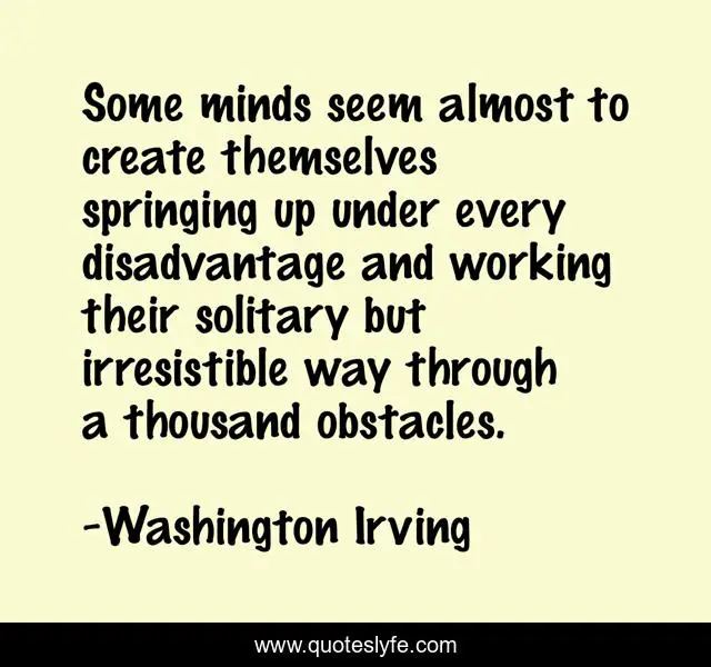 This page presents the quote "Some minds seem almost to create themselves springing up under every disadvantage and working their solitary but irresistible way through a thousand obstacles.". Author of this quote is Washington Irving. .