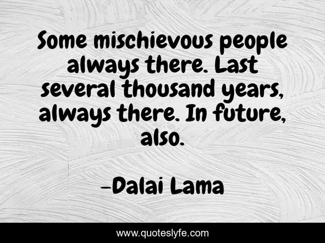 "Dalai Lama Quotes." Quoteslyfe.com, 2025. Sun. 07 Dec. 2025. <https://www.quoteslyfe.com/quote/Some-mischievous-people-always-there-Last-several-330932>.