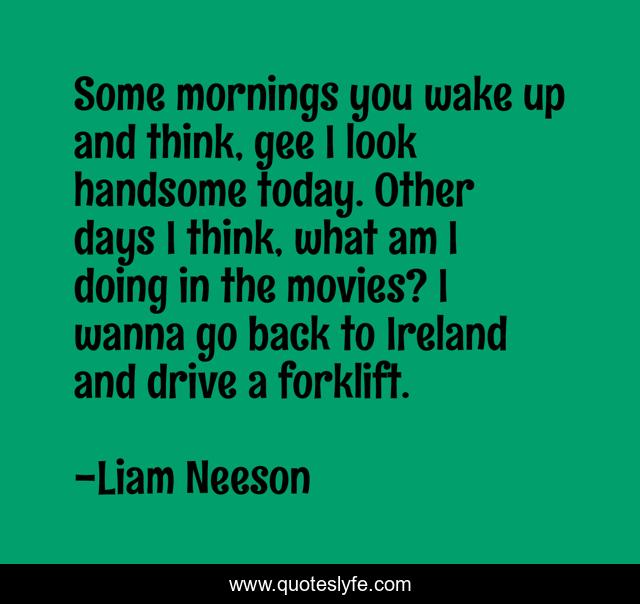 This page presents the quote "Some mornings you wake up and think, gee I look handsome today. Other days I think, what am I doing in the movies? I wanna go back to Ireland and drive a forklift.". Author of this quote is Liam Neeson. This quote is about wake up, today, handsome,.