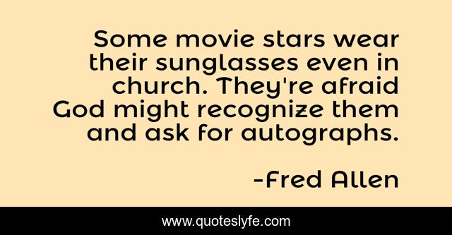 This page presents the quote "Some movie stars wear their sunglasses even in church. They're afraid God might recognize them and ask for autographs.". Author of this quote is Fred Allen. This quote is about fear, sunglasses, stars,.