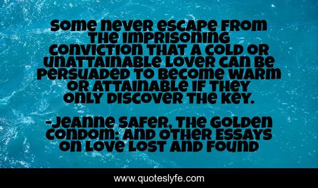 This page presents the quote "Some never escape from the imprisoning conviction that a cold or unattainable lover can be persuaded to become warm or attainable if they only discover the key.". Author of this quote is Jeanne Safer, The Golden Condom: And Other Essays on Love Lost and Found. This quote is about unrequired-love, love, obsession, affection,.