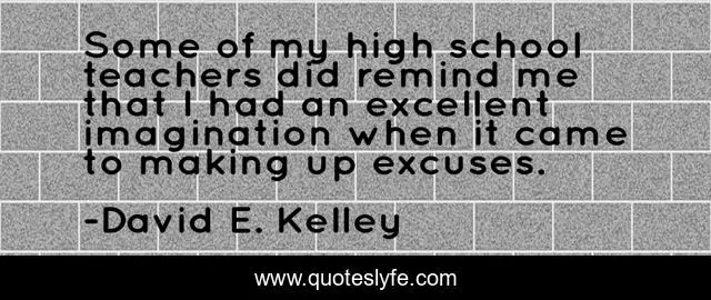 This page presents the quote "Some of my high school teachers did remind me that I had an excellent imagination when it came to making up excuses.". Author of this quote is David E. Kelley. This quote is about me, imagination, school,.