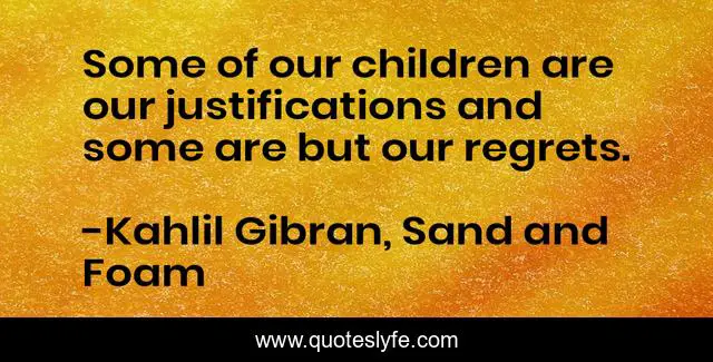 This page presents the quote "Some of our children are our justifications and some are but our regrets.". Author of this quote is Kahlil Gibran, Sand and Foam. .