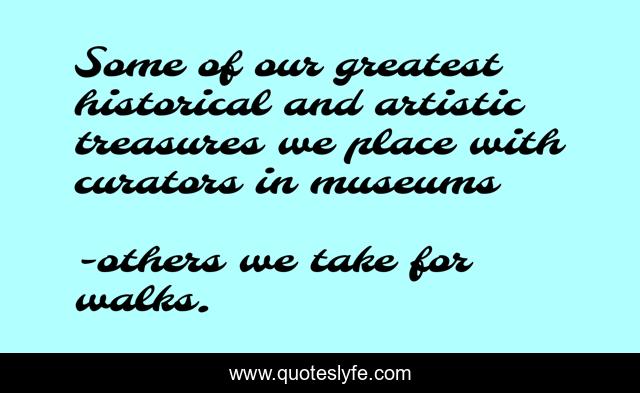 This page presents the quote "Some of our greatest historical and artistic treasures we place with curators in museums". Author of this quote is others we take for walks.. .