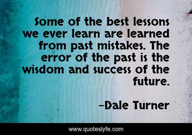 This page presents the quote "Some of the best lessons we ever learn are learned from past mistakes. The error of the past is the wisdom and success of the future.". Author of this quote is Dale Turner. This quote is about future, success, wisdom,.