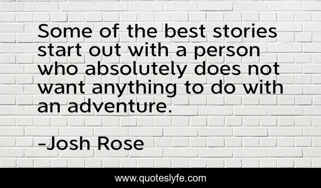 This page presents the quote "Some of the best stories start out with a person who absolutely does not want anything to do with an adventure.". Author of this quote is Josh Rose. This quote is about stories, mine, writing,.