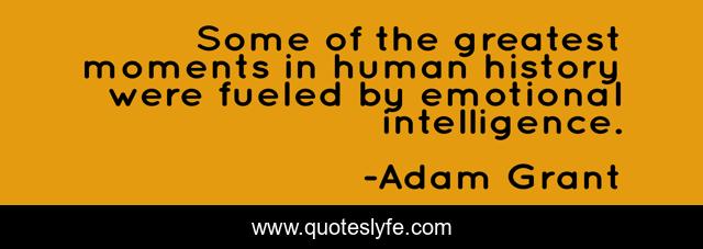 This page presents the quote "Some of the greatest moments in human history were fueled by emotional intelligence.". Author of this quote is Adam Grant. This quote is about moments, greatest, history,.