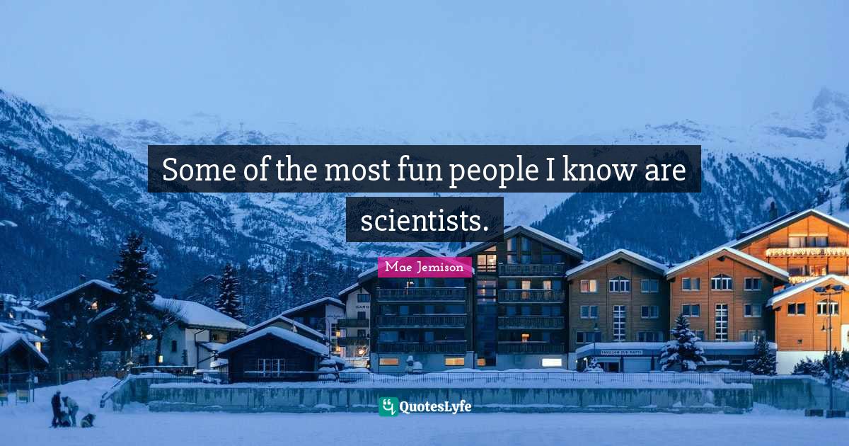 This page presents the quote "Some of the most fun people I know are scientists.". Author of this quote is Mae Jemison. This quote is about fun, scientist, people,.