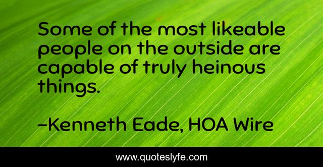 This page presents the quote "Some of the most likeable people on the outside are capable of truly heinous things.". Author of this quote is Kenneth Eade, HOA Wire. This quote is about human-nature, crime, crime-thriller,.