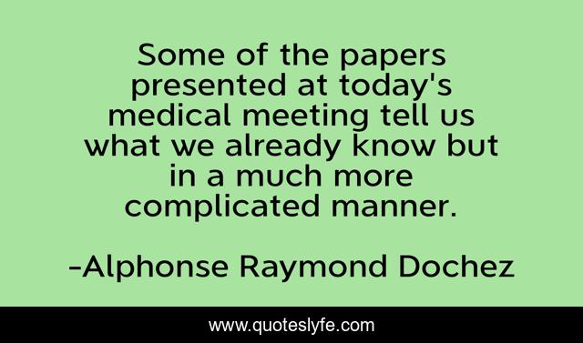 This page presents the quote "Some of the papers presented at today's medical meeting tell us what we already know but in a much more complicated manner.". Author of this quote is Alphonse Raymond Dochez. This quote is about medicine, sickness,.