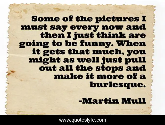 This page presents the quote "Some of the pictures I must say every now and then I just think are going to be funny. When it gets that much, you might as well just pull out all the stops and make it more of a burlesque.". Author of this quote is Martin Mull. .