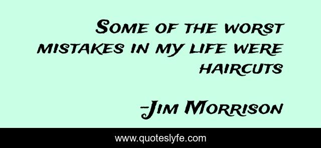 This page presents the quote "Some of the worst mistakes in my life were haircuts". Author of this quote is Jim Morrison. This quote is about hair, fashion, humor, mistakes,.