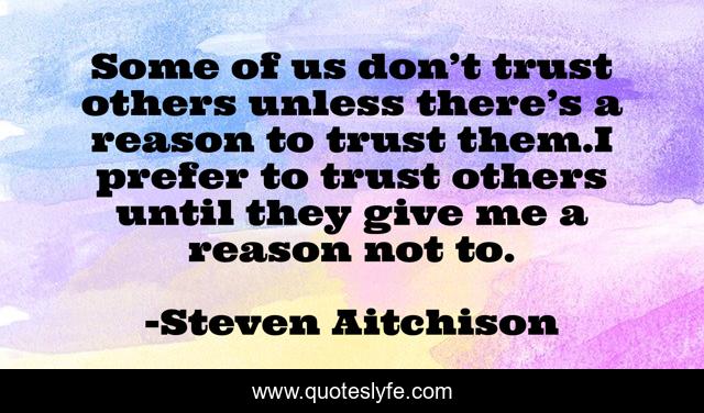 This page presents the quote "Some of us don’t trust others unless there’s a reason to trust them.I prefer to trust others until they give me a reason not to.". Author of this quote is Steven Aitchison. This quote is about confidence, positive, motivational, optimistic, inspirational, enthusiasm, trust,.